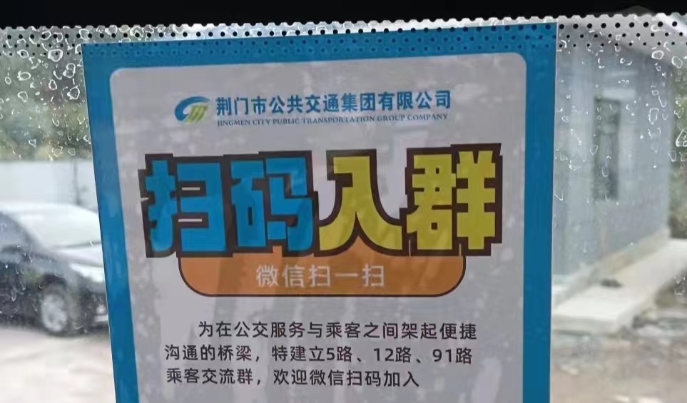 “為在公交服務(wù)與乘客之間架起便捷溝通的橋梁,特建立5路、12路、91路乘客交流群,歡迎微信掃碼加入?!苯?,有乘客在乘坐12路公交車(chē)時(shí)新奇地發(fā)現(xiàn),車(chē)窗上貼出了一個(gè)名為“掃碼入群”的微信二維碼(如圖)。