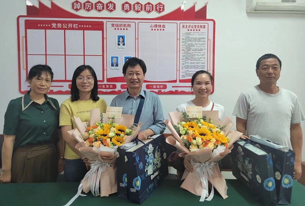 營業(yè)中心班子各自回顧起與兩位退休職工一起工作的美好時光,大家暢所欲言,暖心的話語,觸動著彼此,期盼退休后繼續(xù)關(guān)心、幫助、支持公交事業(yè)的發(fā)展,?!盎丶摇笨纯?。隨后為姚開忠、胡玲玲獻(xiàn)上鮮花并合影留念。