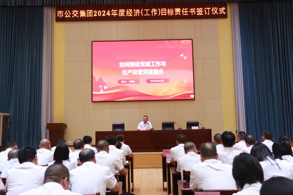 大會(huì)以2024年度經(jīng)濟(jì)(工作)目標(biāo)責(zé)任書的簽訂拉開序幕。隨后集團(tuán)黨委書記、董事長卞軍虎以《黨建融入生產(chǎn)經(jīng)營》為題,為集團(tuán)黨員干部進(jìn)行授課。