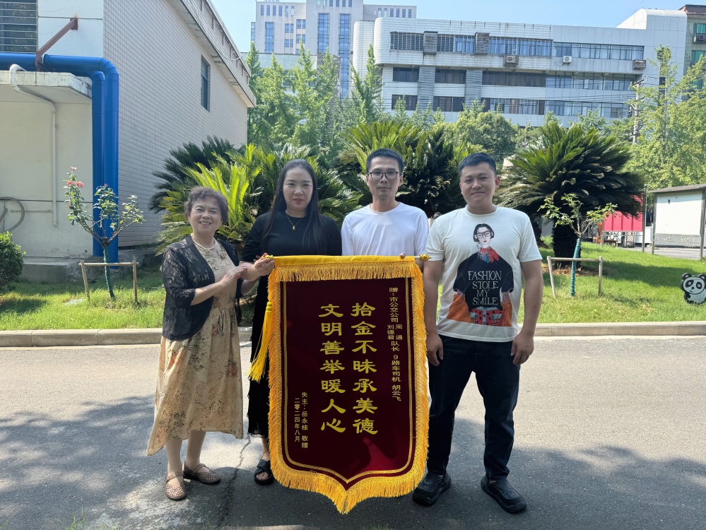 次日上午,胡云飛同路隊(duì)長一起來到岳女士家住小區(qū),上門將錢包歸還。錢包失而復(fù)得,岳女士的臉上洋溢著喜悅與感激之情,她緊緊握住胡云飛的手連聲道謝,并送上錦旗為城市文明和公交服務(wù)點(diǎn)贊。